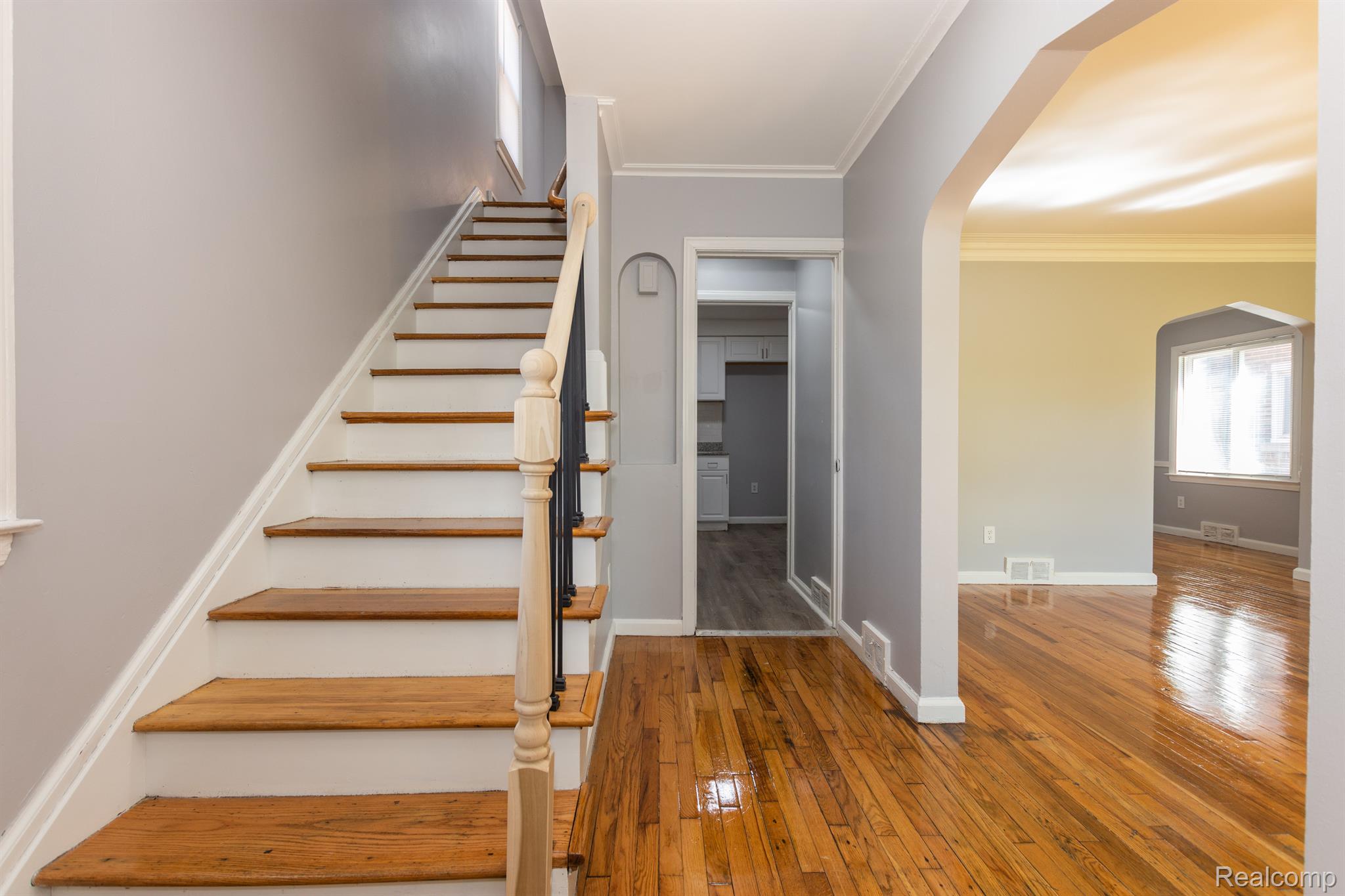 As you step inside, you'll immediately notice the gleaming hardwood floors that flow throughout the entire home. These beautiful floors not only add elegance to the space but also offer easy maintenance and durability for years to come. The interior has been thoughtfully updated with modern finishes and fixtures, creating a seamless blend of contemporary design and classic charm. The spacious living area is the perfect spot to relax and unwind after a long day, with plenty of room for lounging with loved ones or entertaining guests. Large windows flood the space with natural light, creating a bright and inviting atmosphere. Outside, you'll find a private backyard oasis, perfect for enjoying warm summer days or hosting outdoor gatherings. Plus, there's plenty of space for parking, making coming and going a breeze. Located in a desirable neighborhood, this bungalow offers the perfect combination of comfort, style, and convenience. Don't miss your chance to call this beautiful Detroit home yours!
