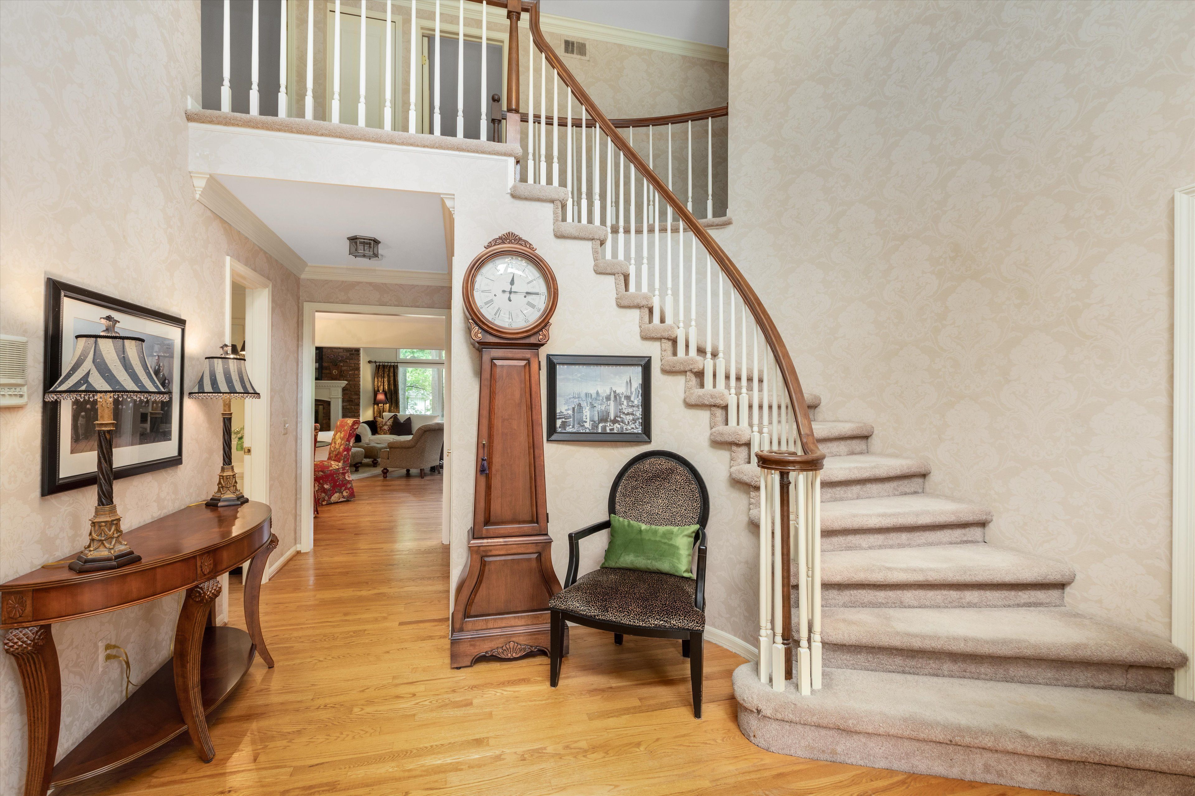 This Grosse Pines beauty is immaculately clean & lovingly maintained. Located on a large private lot with a tranquil wooded backdrop this home features hardwood floors & tons of windows offering scenic views from nearly every room! The entry is flanked by the living room & den with gorgeous built-ins. The kitchen is light & bright w/ loads of cabinets, a beautiful furniture island w/granite counters, a walk-in pantry & access to the gorgeous, private deck! Completely open to the great room, you'll love the cathedral ceilings & natural light from the floor-to-ceiling windows. The first-floor laundry w/mudroom is conveniently located off the garage. The bedrooms are all generous including the master with architectural details, and expansive bath with a separate shower & tub. Finished walk...