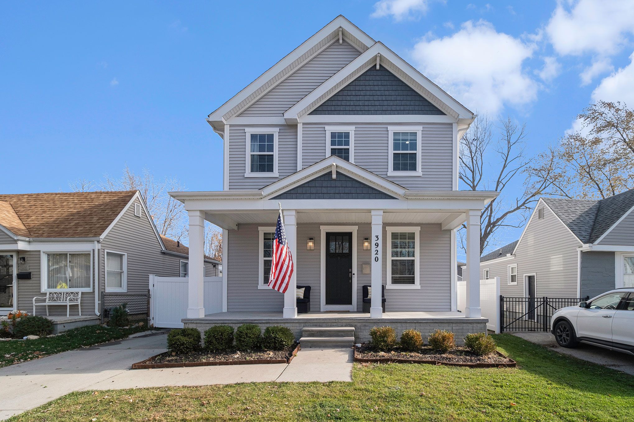 Get ready to enjoy this amazing front porch on this 2017 built Berkley Colonial with 3 bedrooms and 2 and a half baths. No need to wait to build, it's already here! Beautiful great room area open to the large kitchen area with tons of cabinet and counter space. Granite counters, breakfast bar on the island, stainless steal appliances, and hardwood flooring throughout. Office/den on the main floor as well as a half bath. Upstairs you have the primary bedroom with primary bath, 2 additional bedrooms, an additional full bath and a laundry room. The basement is partially finished with laminate flooring. The 2 car garage has a bar for entertaining and the house has a vinyl privacy fence around the yard for your privacy. Smart Home features include the garage door, all roller shades, the Ring...